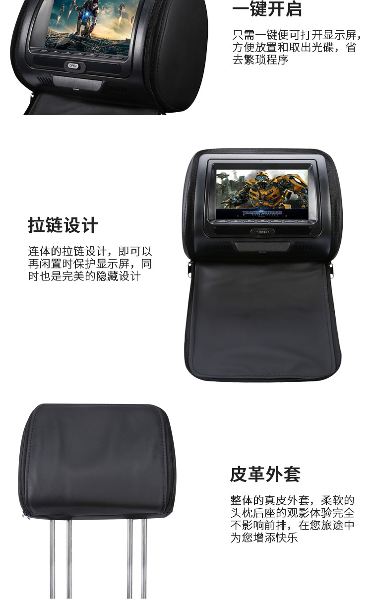 车载后排娱乐,可播放DVD,可通过MP5,USB播放拷贝的视频与图片